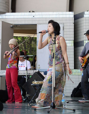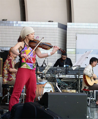 Earth Day 2005 Akino performance member vocal:akino piano:tomas mizuno bass:tomohisa sakamoto guitar:tomohiko kato violin:iku hata drums:toshiyuki tsurumi |